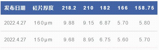 與4月2日價格相比,各尺寸P型單晶硅片(160μm)價格上漲0.06-0.14元/片。