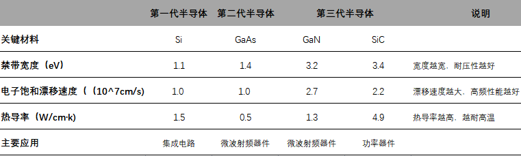 提起第三代半導(dǎo)體,就不得不先簡單介紹下第一、二代半導(dǎo)體。第一代半導(dǎo)體又可以被稱為初代半導(dǎo)體材料,主要以硅(Si)和鍺(Ge)為代表,目前大部分半導(dǎo)體是基于硅基半導(dǎo)體。第二代半導(dǎo)體材料主要以GaAs為代表,是4G時(shí)代的大部分通信設(shè)備的材料。第三代半導(dǎo)體則是進(jìn)入5G時(shí)代以來的主要材料。